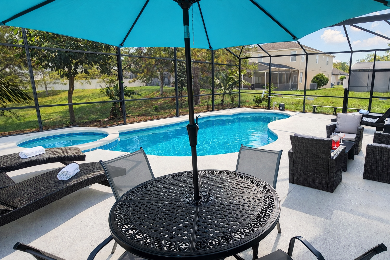 Private Relaxation: Enjoy a screened-in pool and spa, patio seating, and plenty of room to unwind after busy park days.